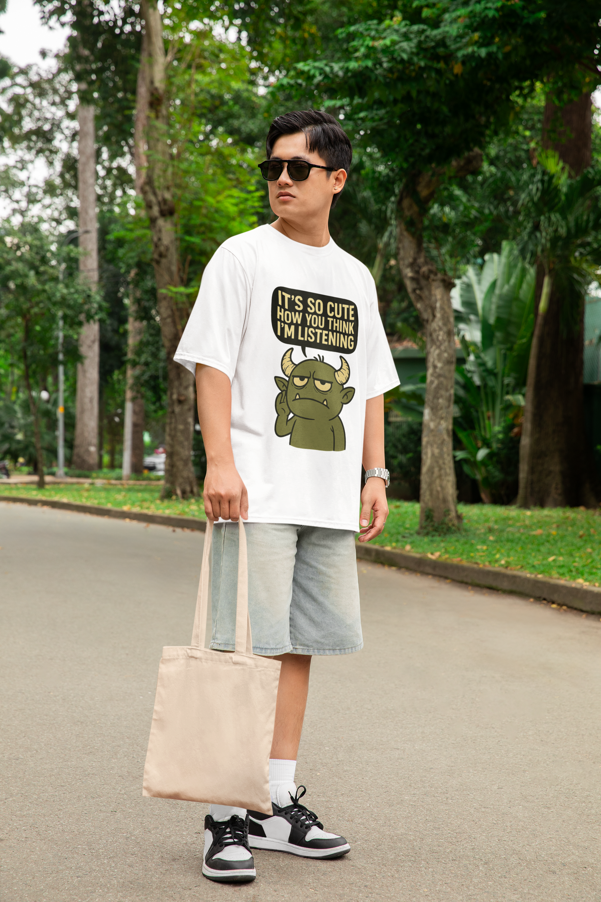 Cute You Think I’m Listening Tee – Oversized Terry Cotton