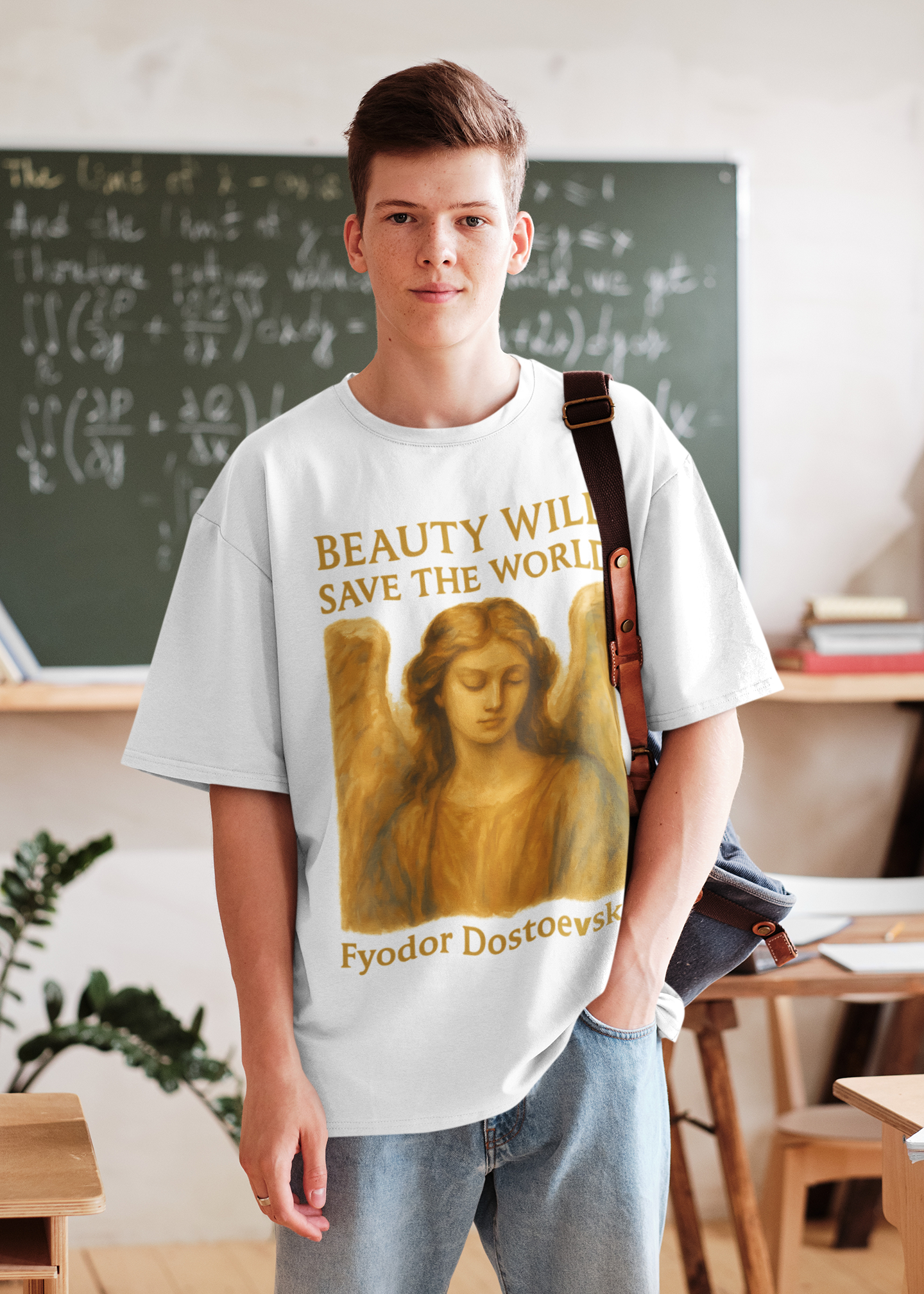Dostoevsky “Beauty Will Save the World” Angel T-Shirt Oversized Terry Cotton