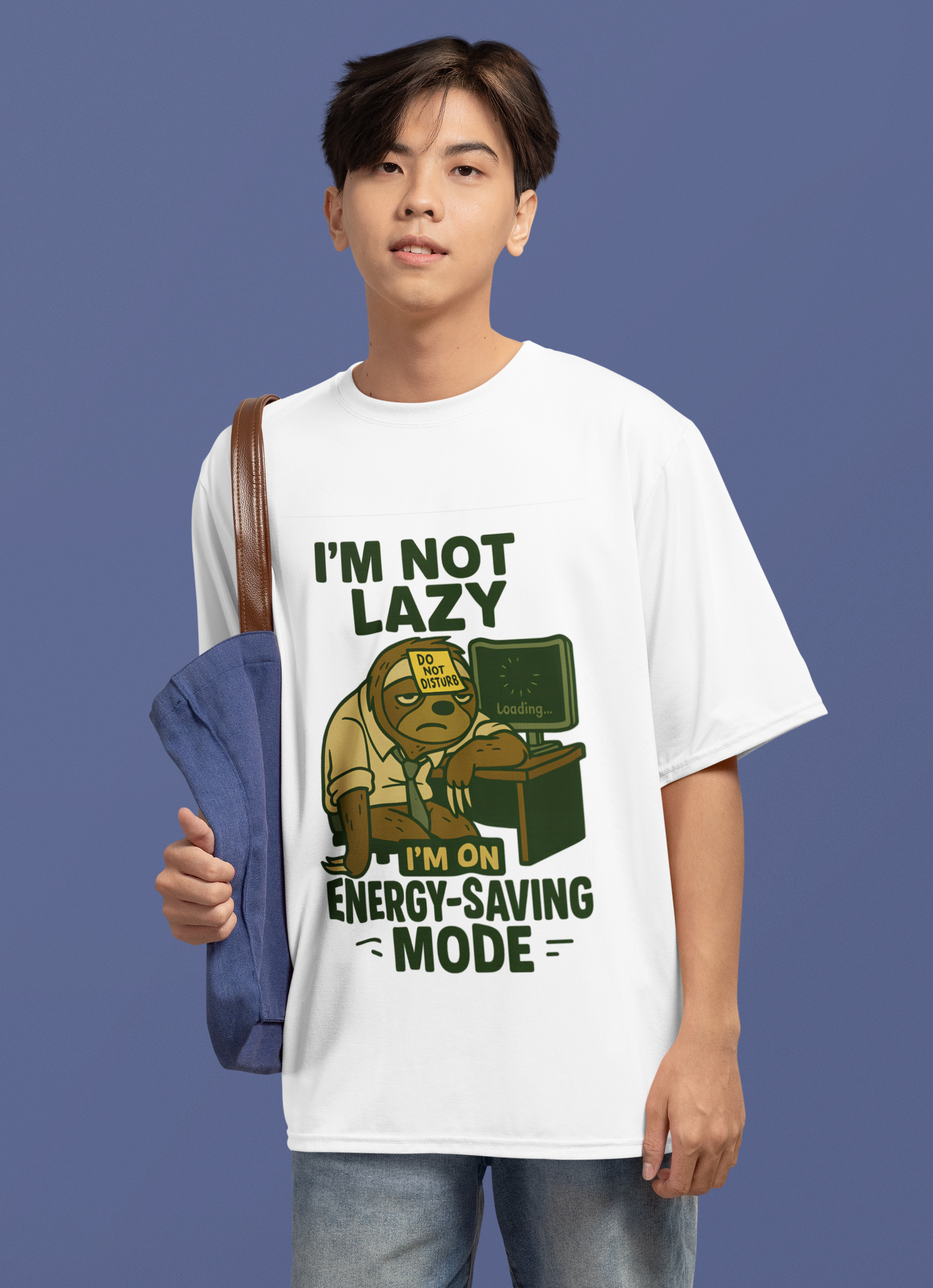 For anyone who runs on 5% motivation and coffee fumes, this oversized Terry cotton tee brings the ultimate mood. Featuring a dead-eyed sloth with a “Do Not Disturb” note and a frozen loading screen, this shirt says what you’re too tired to.