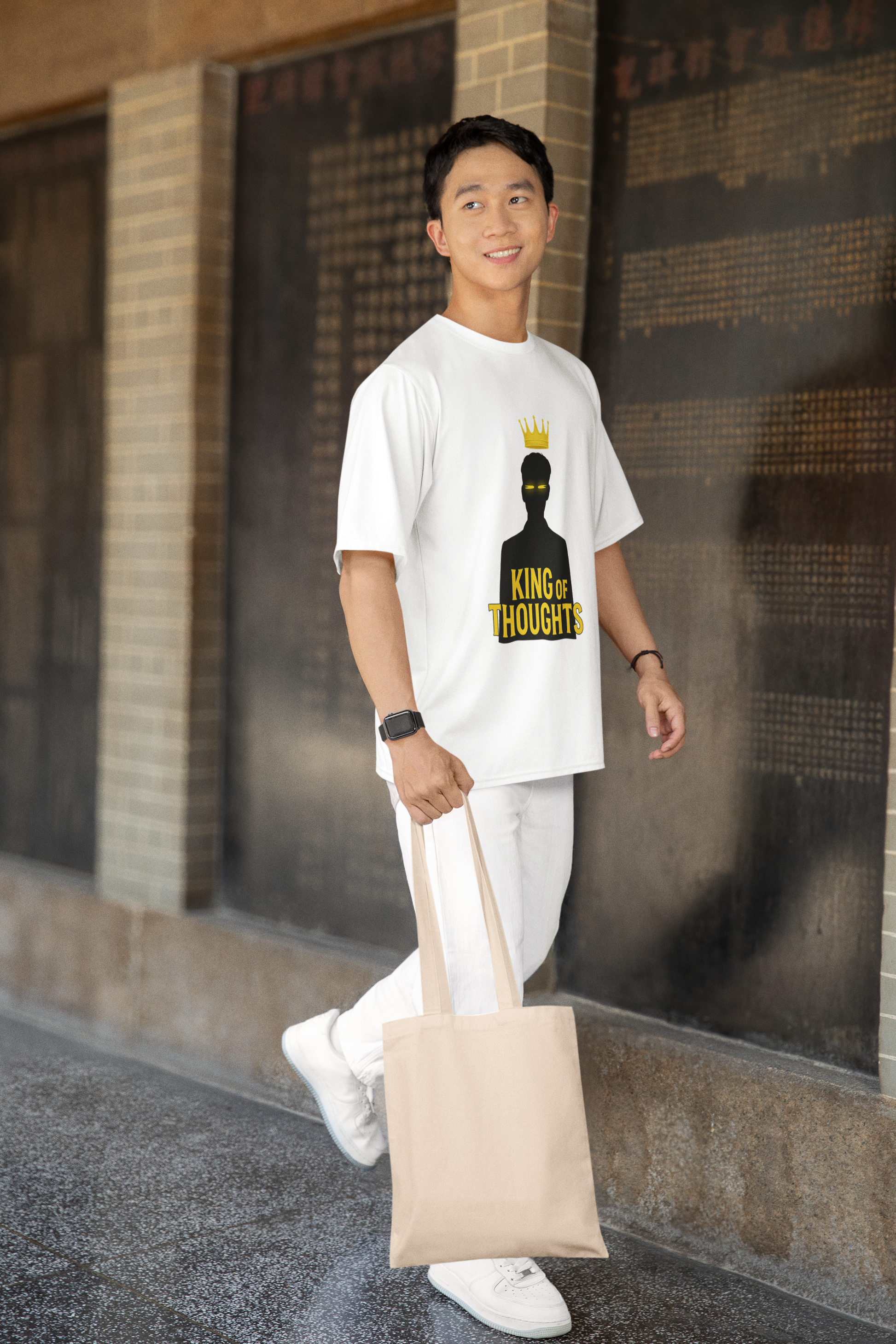 This oversized Terry cotton tee features a shadowy figure crowned in gold and glowing with intensity—carrying the bold title: